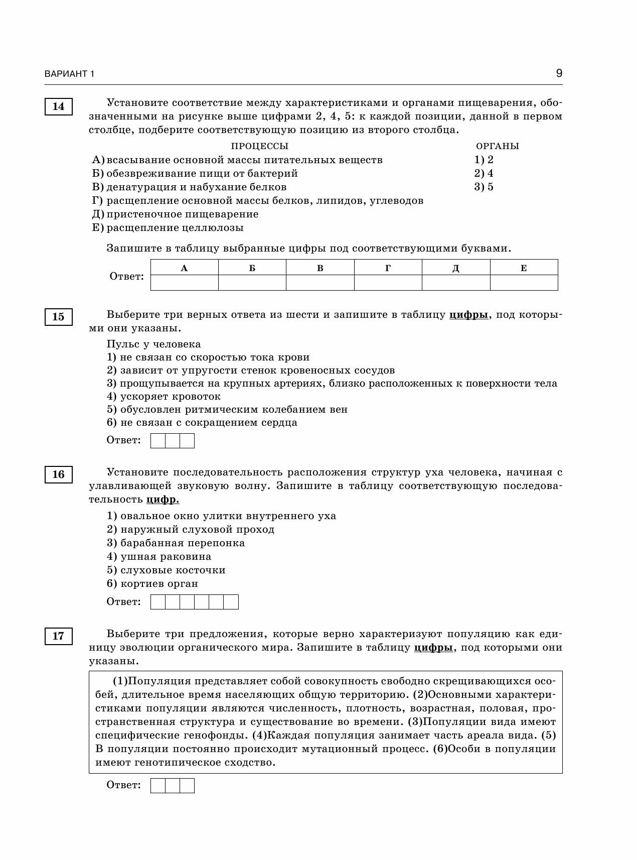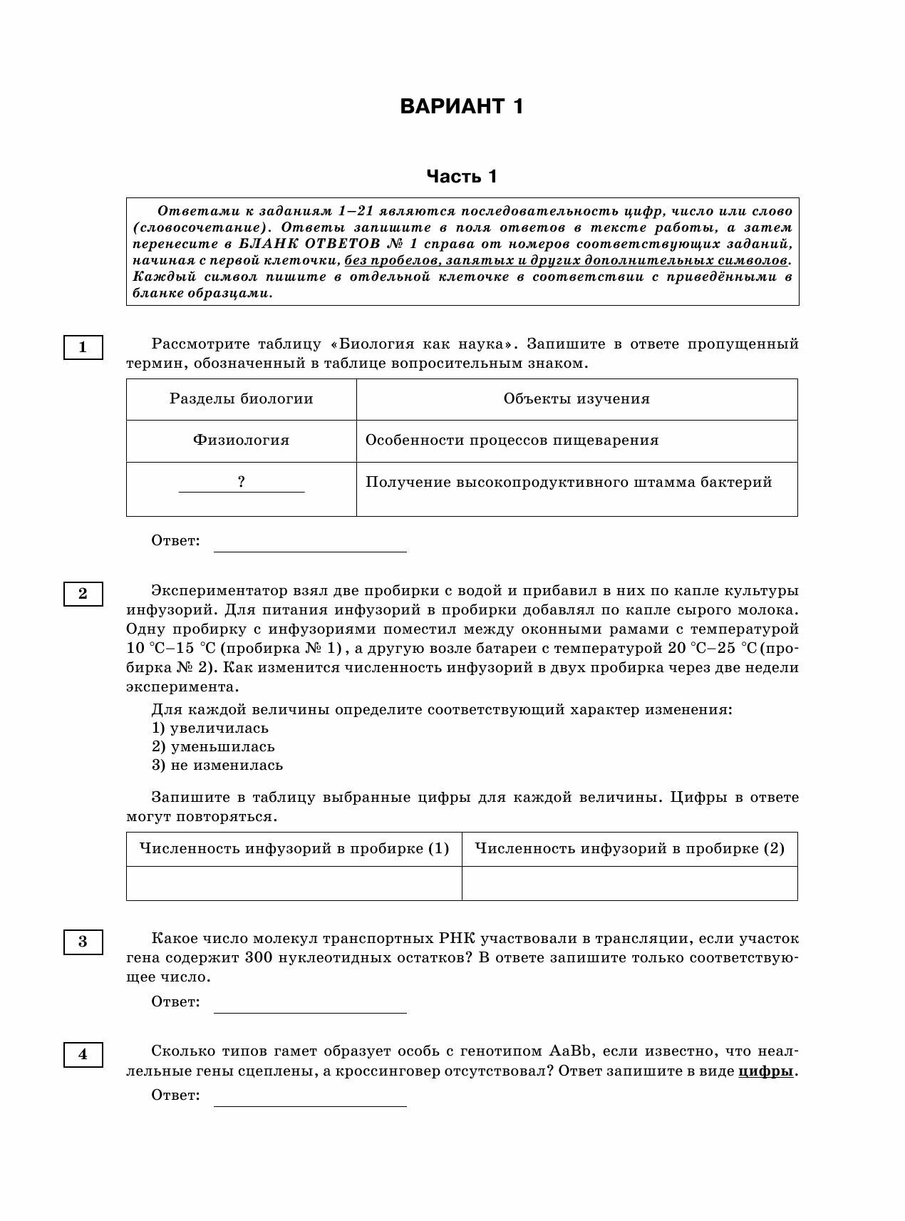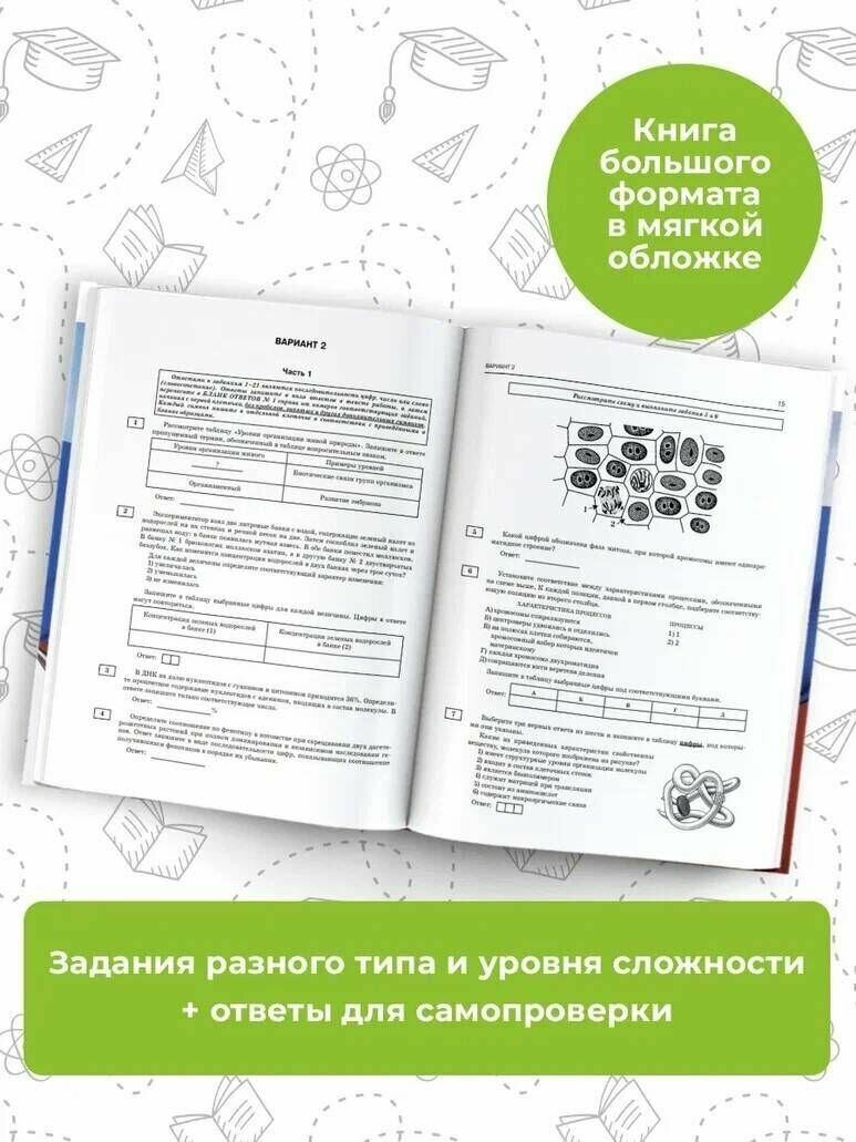 Каждый вариант составлен в полном соответствии с требованиями ЕГЭ, включает задания разных типов и уровня сложности по основным разделам курса биологии: "Клетка как биологическая система", "Организмы как биологическая система", "Надорганизменные системы", "Эволюция органического мира", "Экосистемы и присущие им закономерности", "Многообразие организмов", "Организм человека и его здоровье".