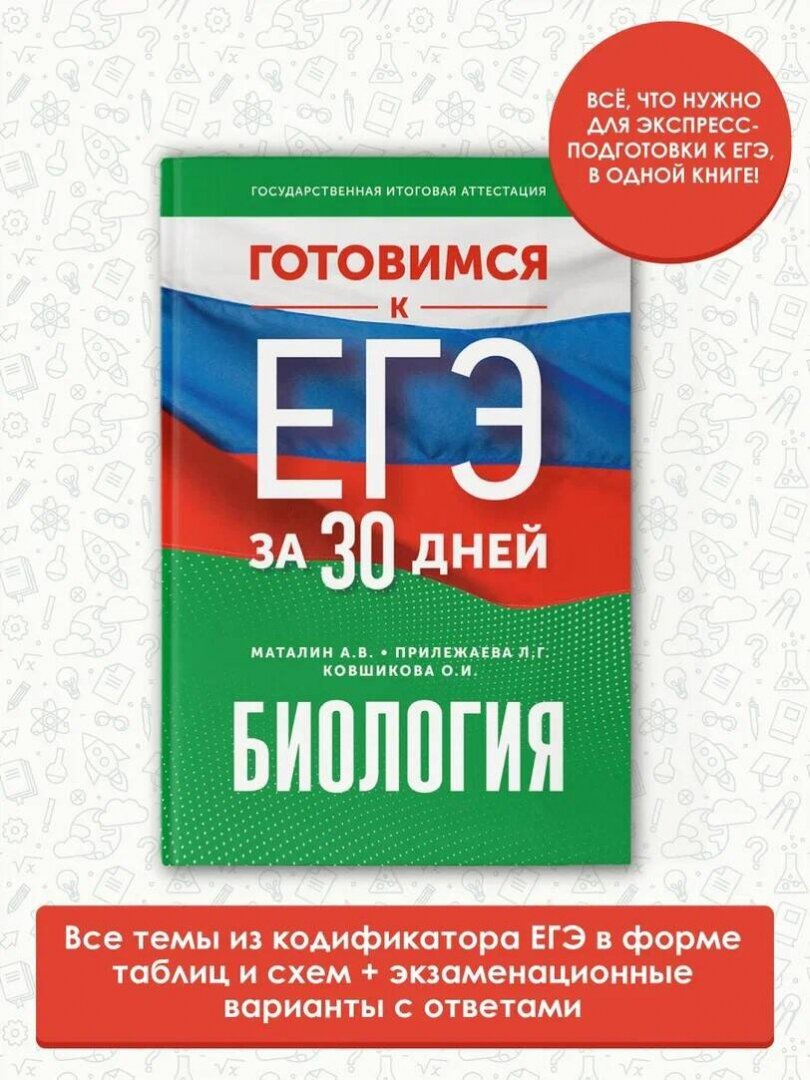Готовимся к ЕГЭ за 30 дней. Биология (Прилежаева Лариса Георгиевна, Маталин Андрей Владимирович, Ковшикова Ольга Ивановна); Образовательные проекты, 2023