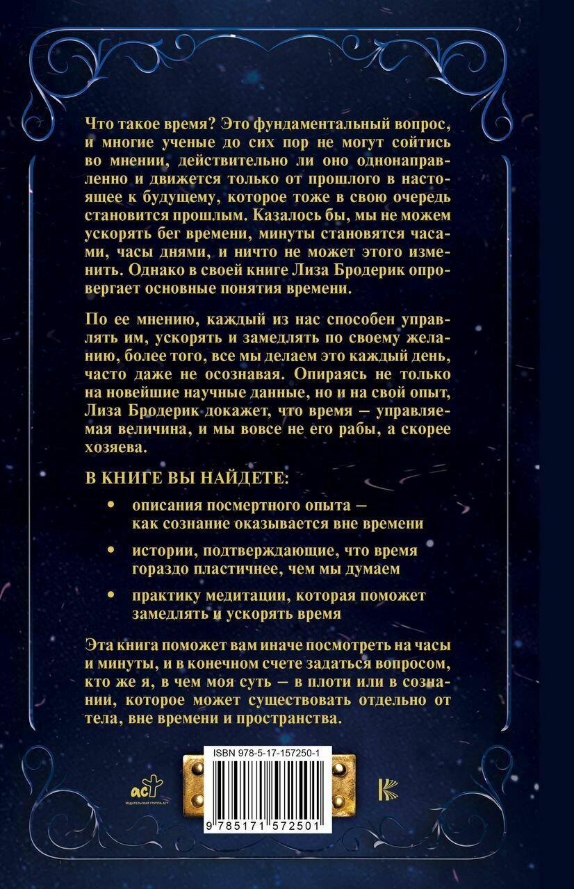 Что такое время? Это фундаментальный вопрос, и многие ученые до сих пор не могут сойтись во мнении, действительно ли оно однонаправленно и движется только от прошлого в настоящее к будущему, которое тоже в свою очередь становится прошлым. Казалось бы, мы не можем ускорять бег времени, минуты становятся часами, часы днями, и ничто не может этого изменить. Однако в своей книге Лиза Бродерик опровергает основные понятия времени.