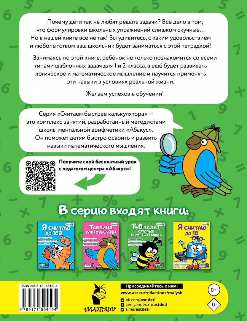 Серия «Считаем быстрее калькулятора» — это комплекс занятий, разработанный методистами школы ментальной арифметики «Абакус». Он поможет детям быстро освоить и развить навыки математического мышления.