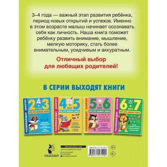 Развивающие занятия. Всё что важно знать. 3-4 года (Дмитриева Валентина Геннадьевна); Сова. Малыш (Обучающая и развивающая литература), 2023