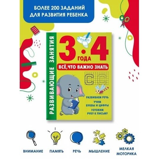 Книга «Развивающие занятия. Всё, что важно знать. 3–4 года» поможет ребёнку развить внимание, мышление и мелкую моторику, стать более внимательным, усидчивым и аккуратным. Малыш приобретёт полезные умения и навыки, выучит буквы и цифры, подготовит руку к письму, узнает много нового и интересного.