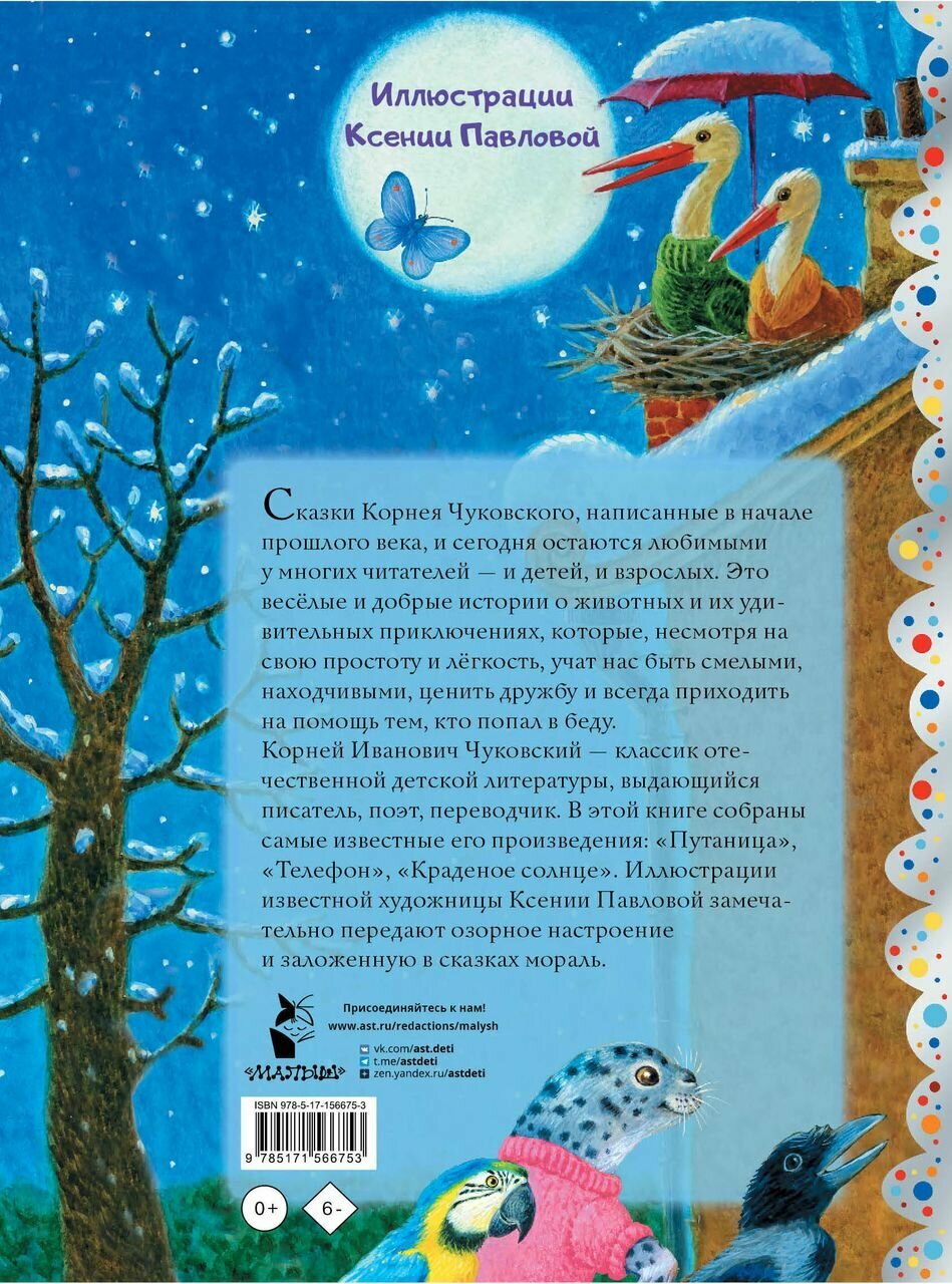 Корней Иванович Чуковский — классик отечественной детской литературы, выдающийся писатель, поэт, переводчик. В этой книге собраны самые известные его произведения: «Путаница», «Телефон», «Краденое солнце». Иллюстрации известной художницы Ксении Павловой замечательно передают озорное настроение и заложенную в сказках мораль.