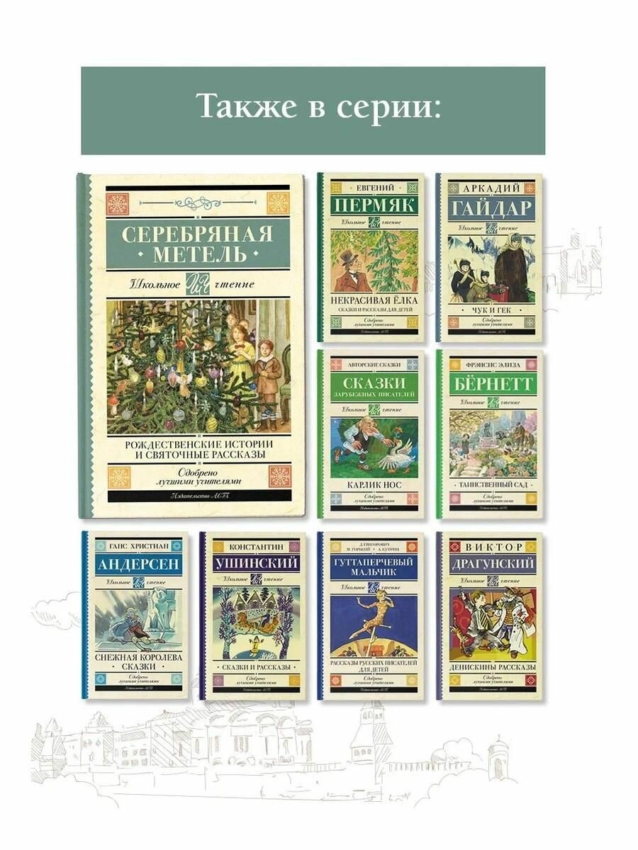 На сегодняшний день товар «Книга: Серебряная метель. Рождественские истории и святочные рассказы (Лесков Николай Семенович, Чехов Антон Павлович, Куприн Александр Иванович, Достоевский Федор Михайлович, Ильин Иван Александрович, Гоголь Николай Васильевич, Никифоров-Волгин Василий Акимович); ИЗДАТЕЛЬСТВО "АСТ", 2023» можно купить с кешбеком в 5 магазинах: ЛитРес, Буквоед, Читай-город, book24, Яндекс.Маркет