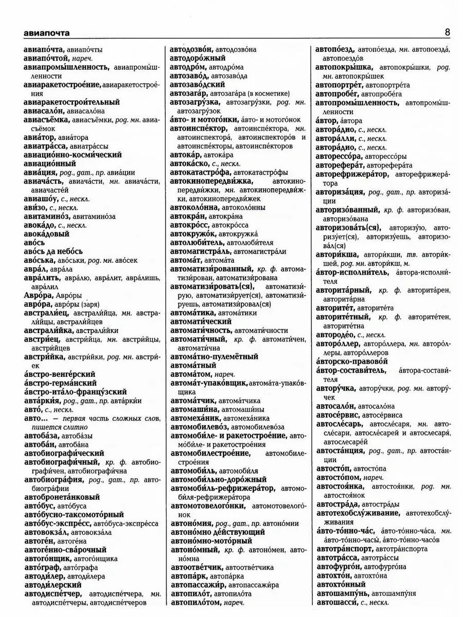 Данный словарь содержит около 100 тысяч слов. Его уникальной особенностью является наличие всех необходимых грамматических форм слов, данных не в усеченной форме, а полностью.
