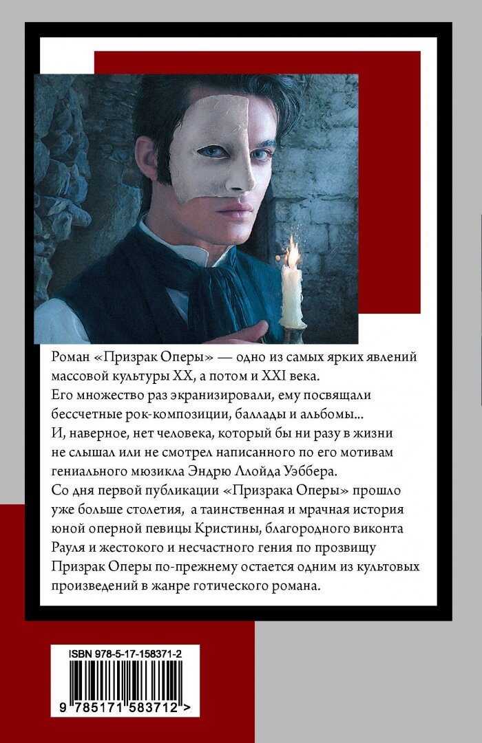 Со дня первой публикации "Призрака Оперы" прошло уже больше столетия, а таинственная и мрачная история юной оперной певицы Кристины, благородного виконта Рауля и жестокого и несчастного гения по прозвищу "Призрак Оперы" по-прежнему остается одним из культовых произведений в жанре "готического романа".