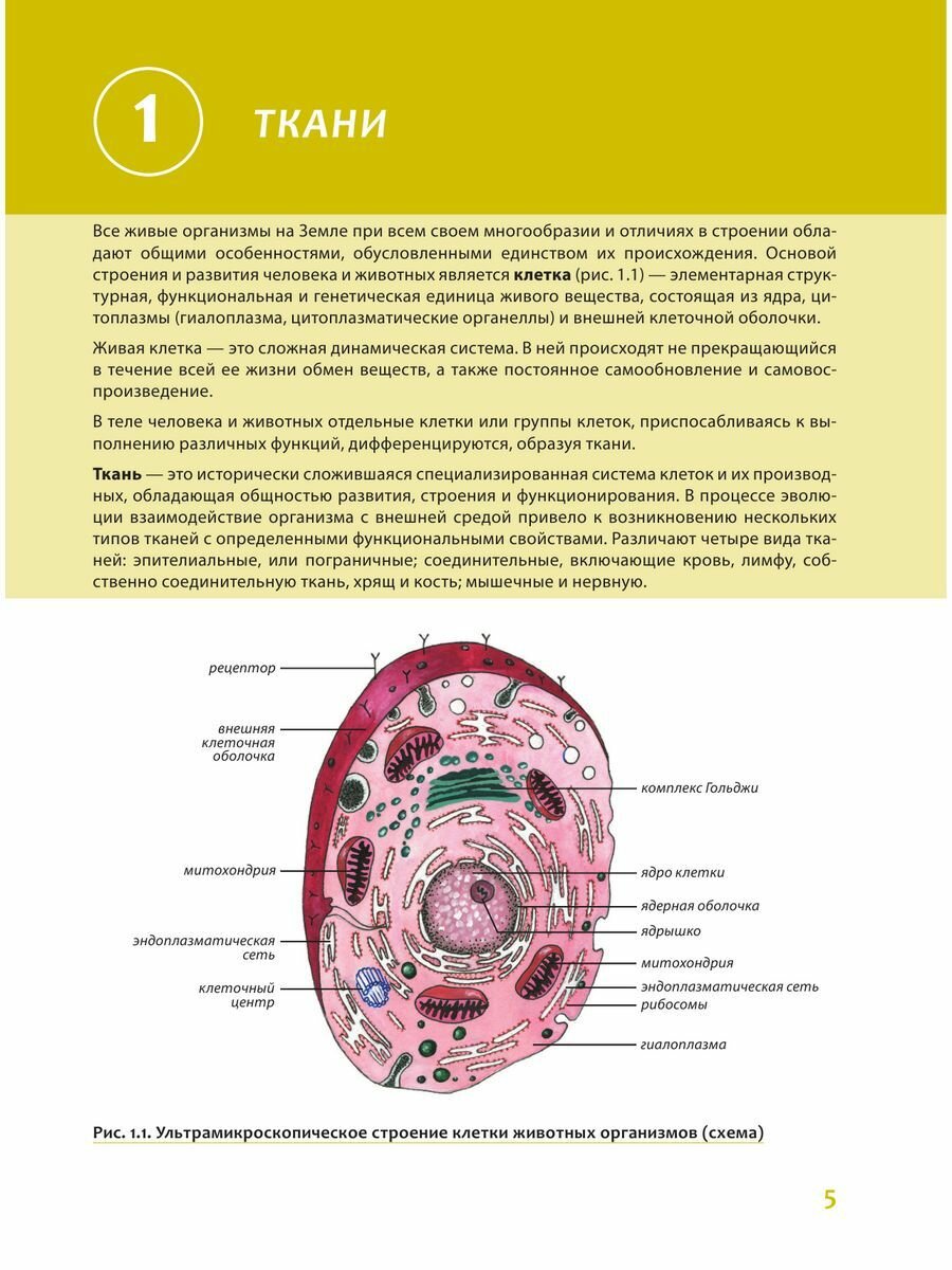 Книга построена по принципу изложения макро- и микроскопического строения органов. Одновременно с описанием топографии и строения органов показаны микроструктуры паренхимы и стромы стенок пищеварительного тракта, дольки легкого, почки, яичка и яичника, надпочечников, лимфатического узла, костного мозга, центральной нервной системы и т. д.