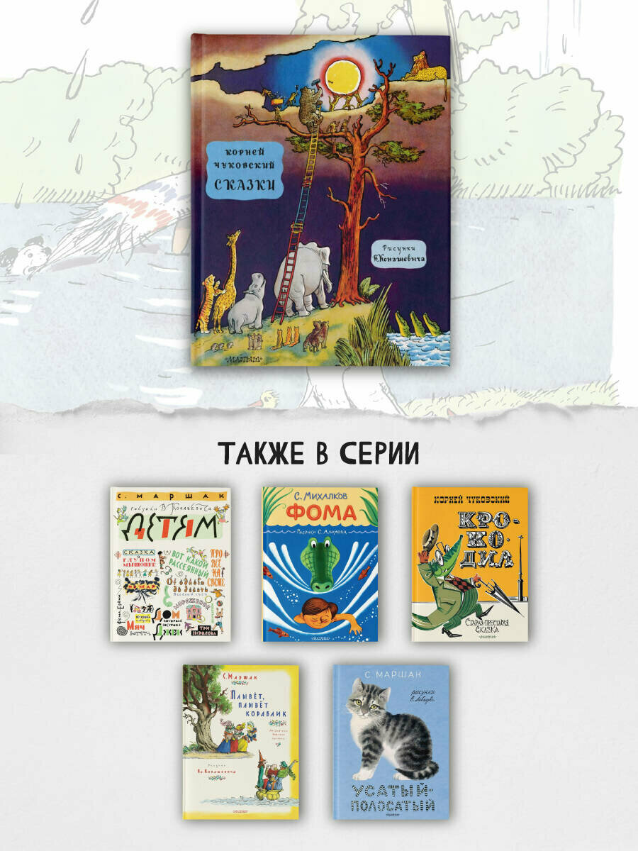 Книга является настоящим сокровищем для каждого ребенка и книжного коллекционера! Легендарные произведения всеми любимого Корнея Чуковского в обрамлении классических иллюстраций именитого Владимира Михайловича Конашевича! Очень ждала переиздания этой книги и счастью нет предела! Очень объемный сборник, включающий в себя все классические, любимые с детства произведения. Причем, перечень действительно внушительный. Очень удобно, так как приходилось покупать отдельные книги с иллюстрациями Конашевича, которых тоже не так много осталось в продаже. Я бы посоветовала оформить сразу предзаказ на книгу, так как, скорее всего, тираж очень быстро раскупят. Советую всем к приобретению! Достойный экспонат любой книжной коллекции и детской библиотеки!