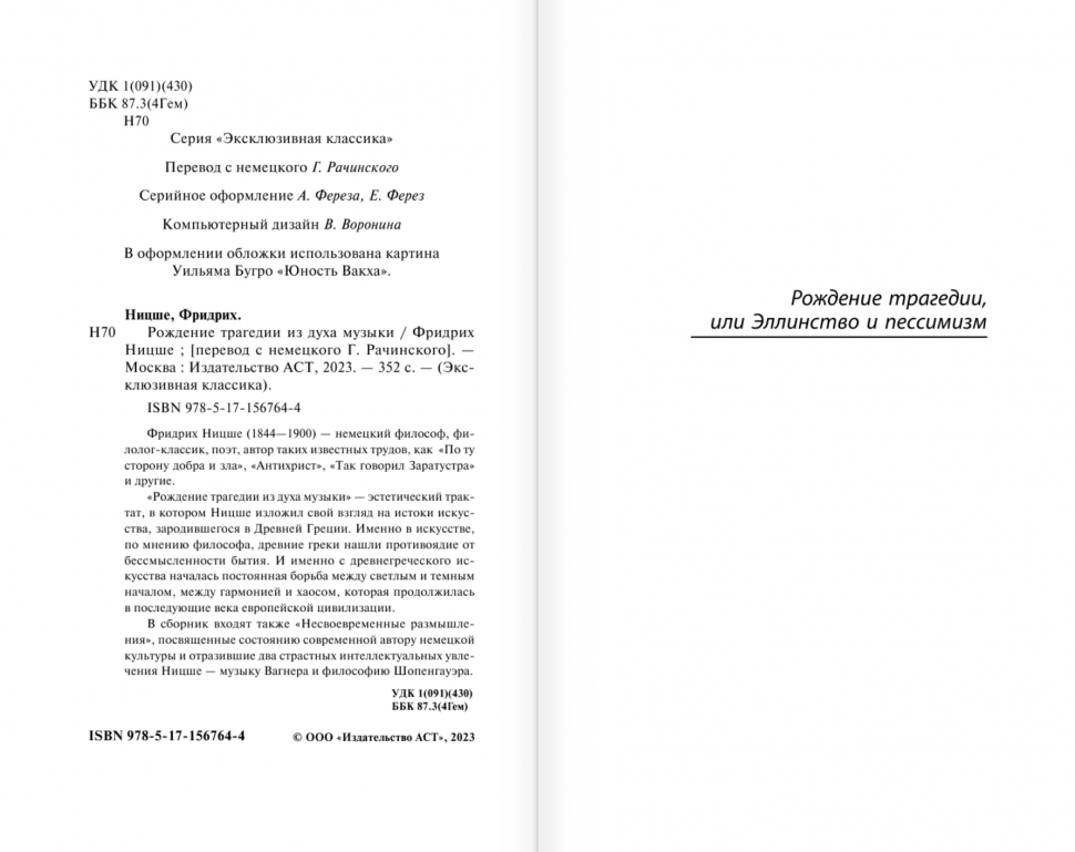 Рождение трагедии из духа музыки (Фридрих Вильгельм Ницше); Издательство АСТ, 1872