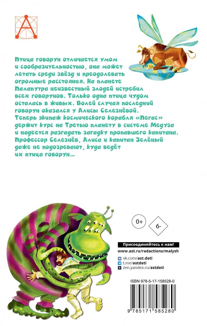 Птица говорун отличается умом и сообразительностью, она может летать среди звёзд и преодолевать огромные расстояния. На планете Палапутра неизвестный злодей истребил всех говорунов. Только одна птица чудом осталась в живых. Волей случая последний говорун оказался у Алисы Селезнёвой. Теперь экипаж космического корабля «Пегас» держит курс на Третью планету в системе Медуза и надеется разгадать загадку пропавшего капитана. Профессор Селезнёв, Алиса и капитан Зелёный даже не подозревают, куда ведёт их птица говорун…