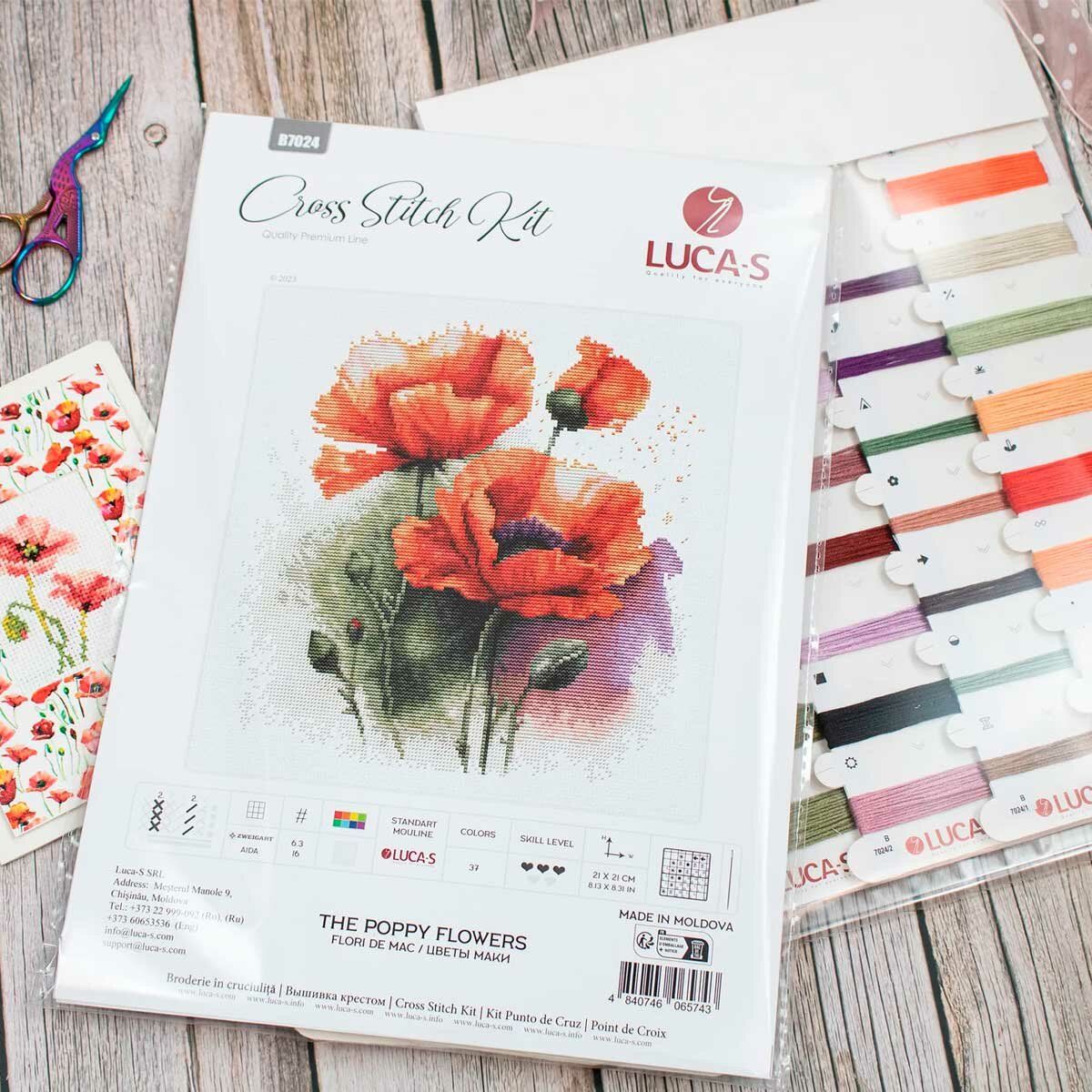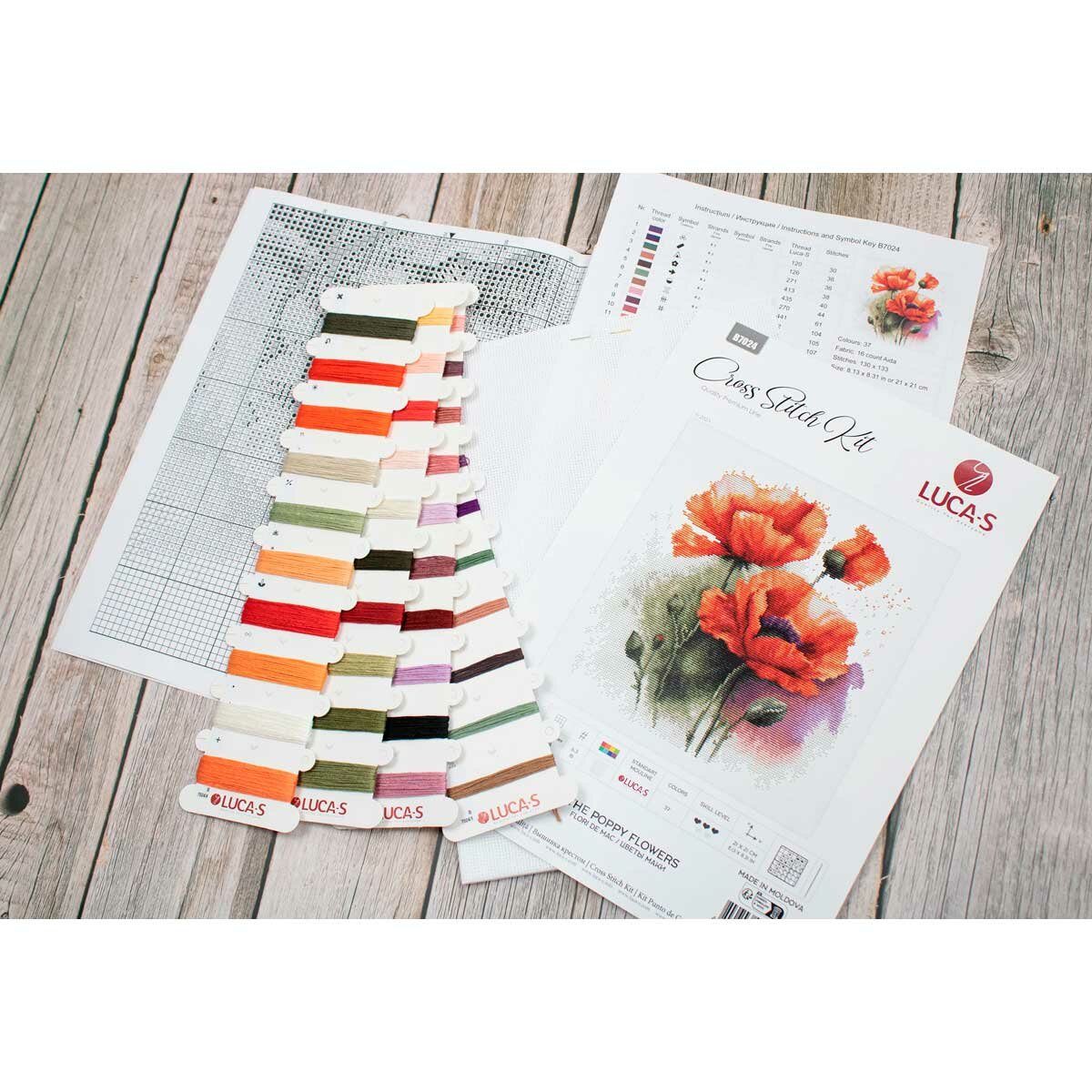Набор для вышивки крестом 'Цветы маки' поможет добавить красок в ваш дом и зарядиться летним настроением. Каждый лепесток, каждый изгиб стебля проработан до мельчайших деталей, словно его рисовал опытный художник. Готовая работа позволит продемонстрировать ваше мастерство. Luca-S позаботилась о вашем комфорте, чтобы вышивка дарила вам только радость. Нитки на органайзере разложены по цветам и подписаны – сверяться со схемой теперь проще, больше никакоц путаниц и поисков нужного цвета! Фирменные мулине Luca-S – прочные, без узелков и утолщений. Забудьте о неаккуратных стежках и наслаждайтесь безупречным результатом. Aida 16 – канва, созданная для изящных деталей и реалистичных сюжетов. Но работа с ней требует внимания и усидчивости. Вот несколько советов, которые помогут вам: 1. Обеспечьте себе хорошее освещение: это может быть настольная лампа или естественный свет из окна. 2. Не забудьте про увеличительное стекло: оно поможет вышивать мелкие детали и сложные элементы. 3. Не пытайтесь вышить все за один день. Не торопитесь, получайте удовольствие от каждого стежка. 4. Делайте перерывы, чтобы ваши глаза могли отдохнуть. В наборе: канва Aida 16 белая, хлопковое мулине Luca-S, игла №26 – 1 шт, черно-белая символьная схема, инструкция. Количество цветов: 37.