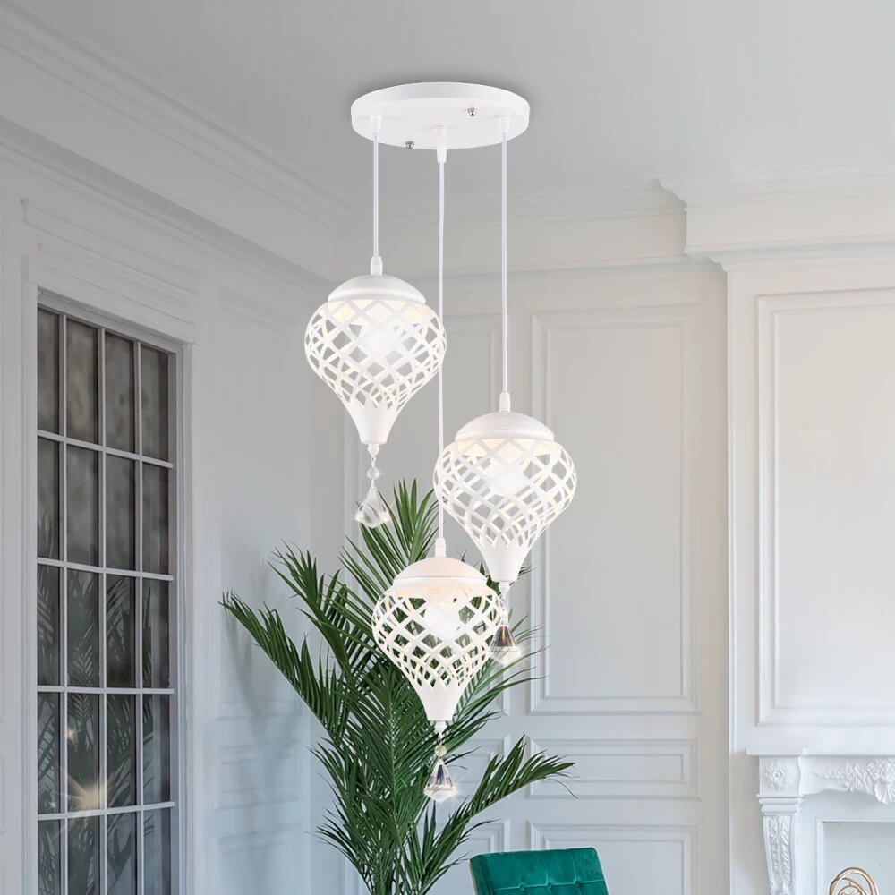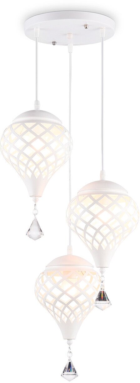 Подвесой светильник из коллекции TRADITIONAL, Модель TR8443 представлена в современном стиле лофт, Светильник выполнен из белого металлического каркаса и металлических плафонаов со стеклянным декором, Для данной модели подойдут лампы с цоколем Е27, Светильник будет прекрасным дополнением в любом помещении,