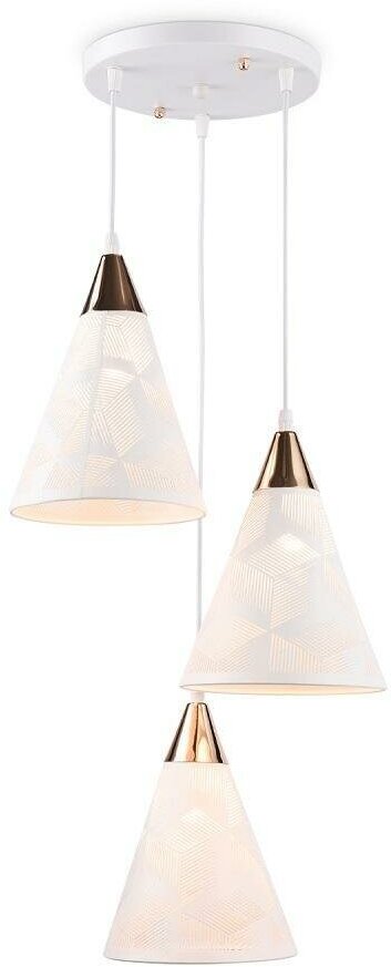 Подвесой светильник из коллекции TRADITIONAL, Модель TR8433 представлена в современном стиле лофт, Светильник выполнен из белого металлического каркаса с золотым декором и металлических плафонов, Для данной модели подойдут лампы с цоколем Е27, Светильник будет прекрасным дополнением в любом помещении,