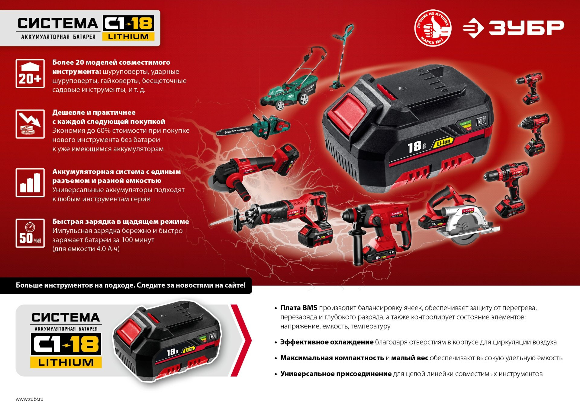 | Аккумуляторная система | ЗУБР С1-18 В |
