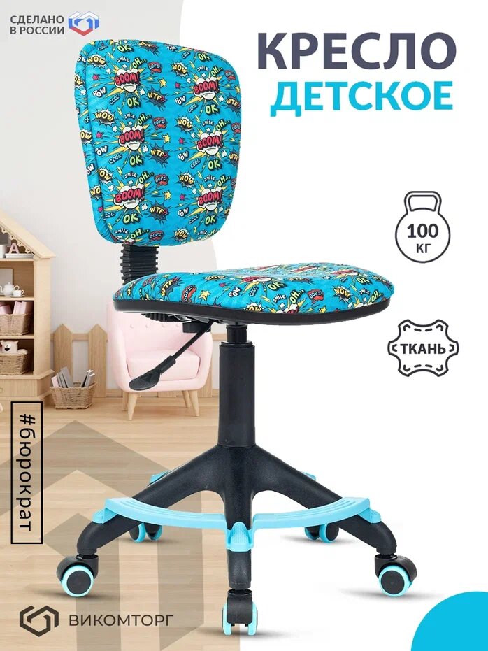 Детское кресло Бюрократ CH-204-F с обивкой из ткани, без подлокотников, с подставкой для ног. Удобная модель кресла с эргономичной спинкой для дома, детской комнаты или школы. Детское кресло имеет регулировку высоты с помощью газлифта и глубины сиденья. Модель установлена на прочную 5-лучевую основу из пластика, которая имеет надежно закрепленные колесики с полиуретановым покрытием для паркета и ламината. Уникальные колеса с обратным стопором: колесо перестает крутиться под нагрузкой от 40кг. Таким образом, когда ребенок сидит на кресле, оно не откатится. У кресла нет механизма качания. Соответствует стандарту BIFMA.