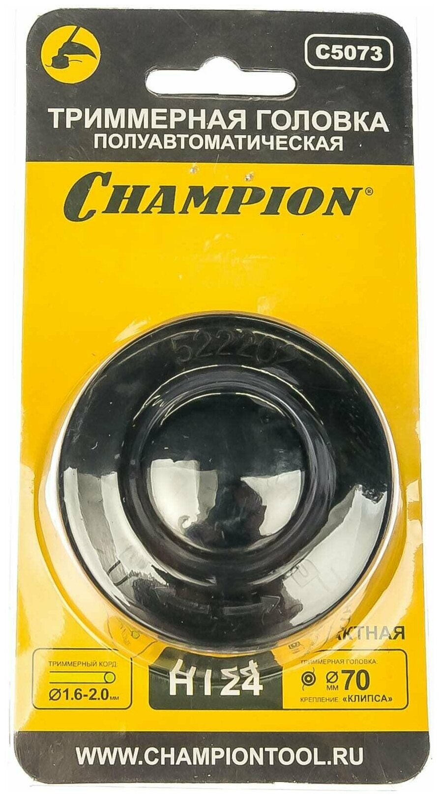 Головка HT24 CHAMPION C5073 подходит для работы с триммерами Champion ET450. Представляет собой катушку с леской, закрытую пластиковым корпусом. Используется для срезания любых видов травы. Данная триммерная головка является полуавтоматической, и подача лески из бобины осуществляется путем нажатия кнопки в нижней части катушки о землю прямо в процессе работы. За счет центробежной силы леска разматывается и выдвигается, а специальный нож на кожухе обрезает лишнюю леску, оставляя всегда одинаковую рабочую длину. Головка предусматривает выход лески с двух сторон.