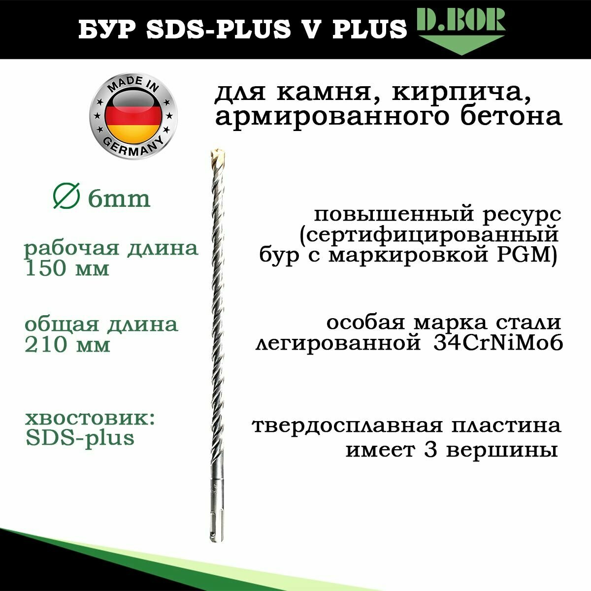 Бур D.Bor sds-plus V Plus 6*150/210 2-cutting 2409