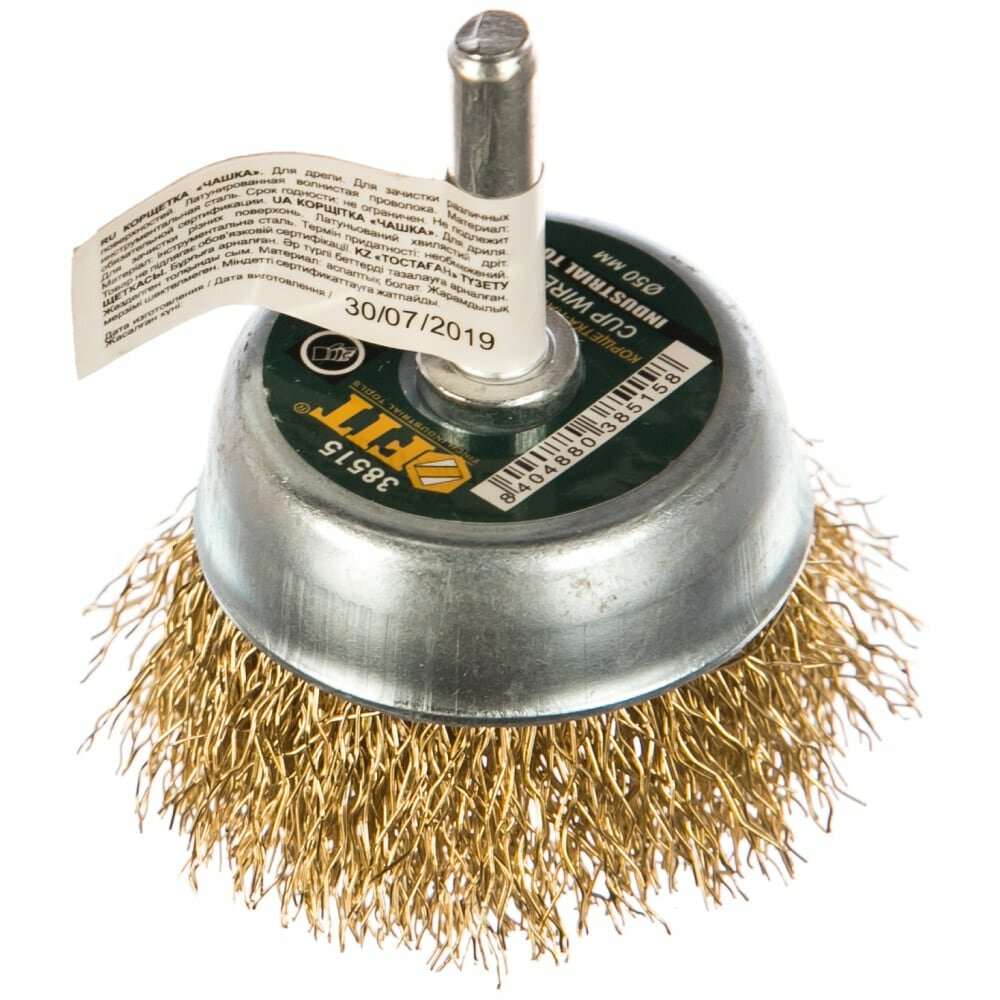 Корщетка латунированная FIT для дрели 50мм (чашка) 38515