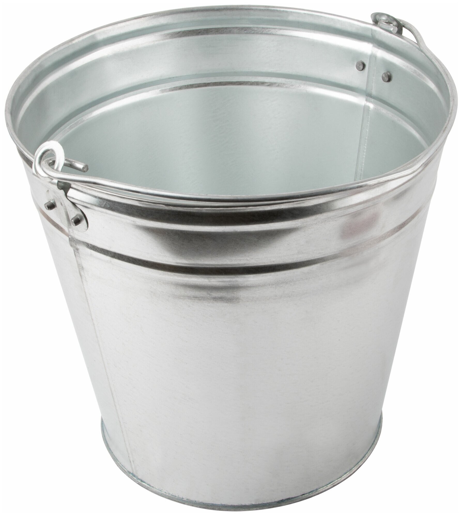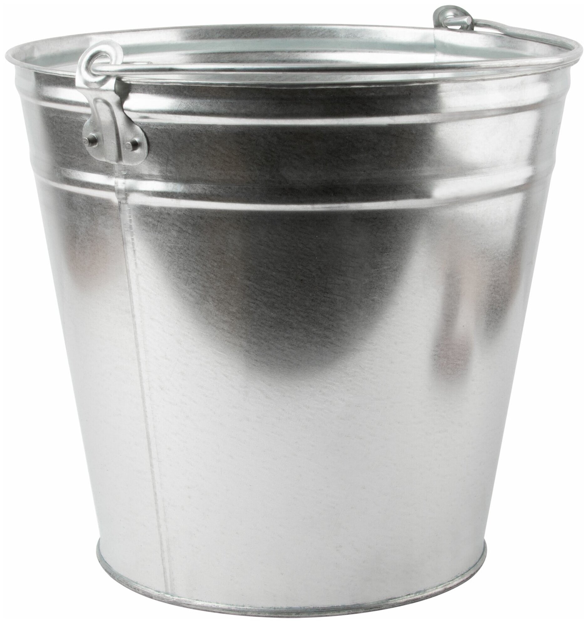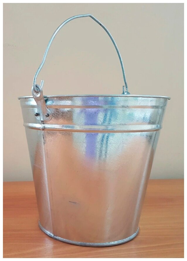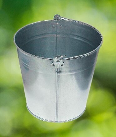 Оцинкованное хозяйственное ведро подойдет для бытовых нужд и строительства. От коррозии металл надежно защищен толстым слоем цинка. Жесткая металлическая рукоять оптимальна для переноски и надежно закреплена в петлях. Дополнительная обкатка повышает жесткость конструкции.