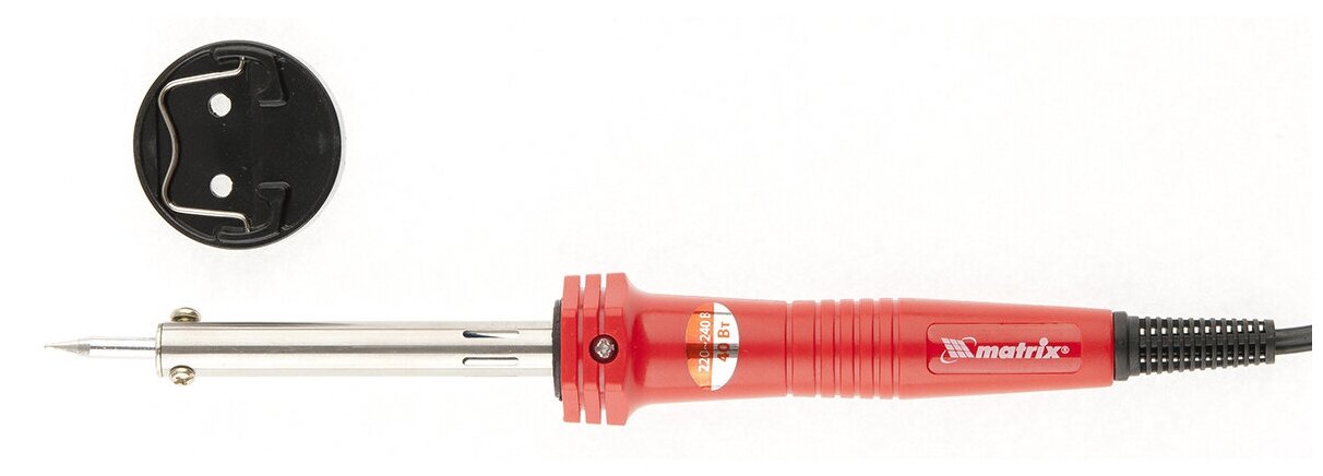 Паяльник Matrix изготовлен из ABS-пластика с пониженной теплопроводностью и имеет медный наконечник с долговечным покрытием. Используется для пайки транзисторов, микрочипов, электросхем и проводов. В качестве нагревательного элемента использована нихромовая спираль, что снижает риск поломки в случае падения или удара. Конусовидное жало оптимально для проведения точной пайки. Гальваническое покрытие защищает наконечник от внешних воздействий, что продлевает срок службы инструмента. Паяльник пригодится радиолюбителям и домашним мастерам.