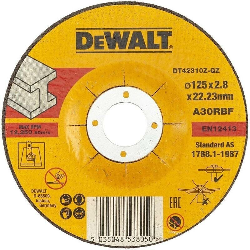 Круг отрезной по металлу 125х2,8 мм INDUSTRIAL DeWalt DT42310Z. Высокопроизводительный абразивный круг для УШМ, соответствующий европейскому стандарту OS.