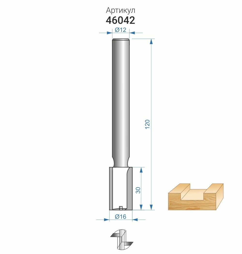 Фреза пазовая прямая Энкор 16*30мм хв.12мм 46042