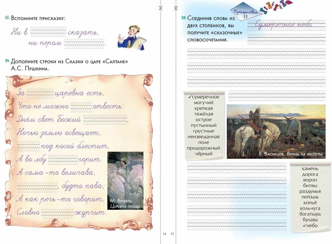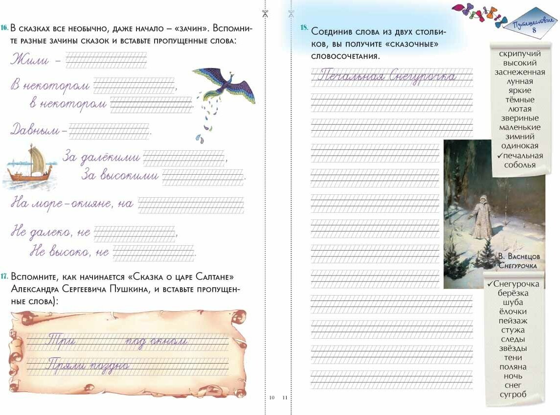 Целых 60 творческих заданий содержат в себе тетради «В тридевятом царстве-государстве»! Они познакомят учеников с законами построения сказки. Ребята вспомнят, а то и сочинят сами зачины, присказки и концовки сказок. А могут и сами попробовать написать сказку!