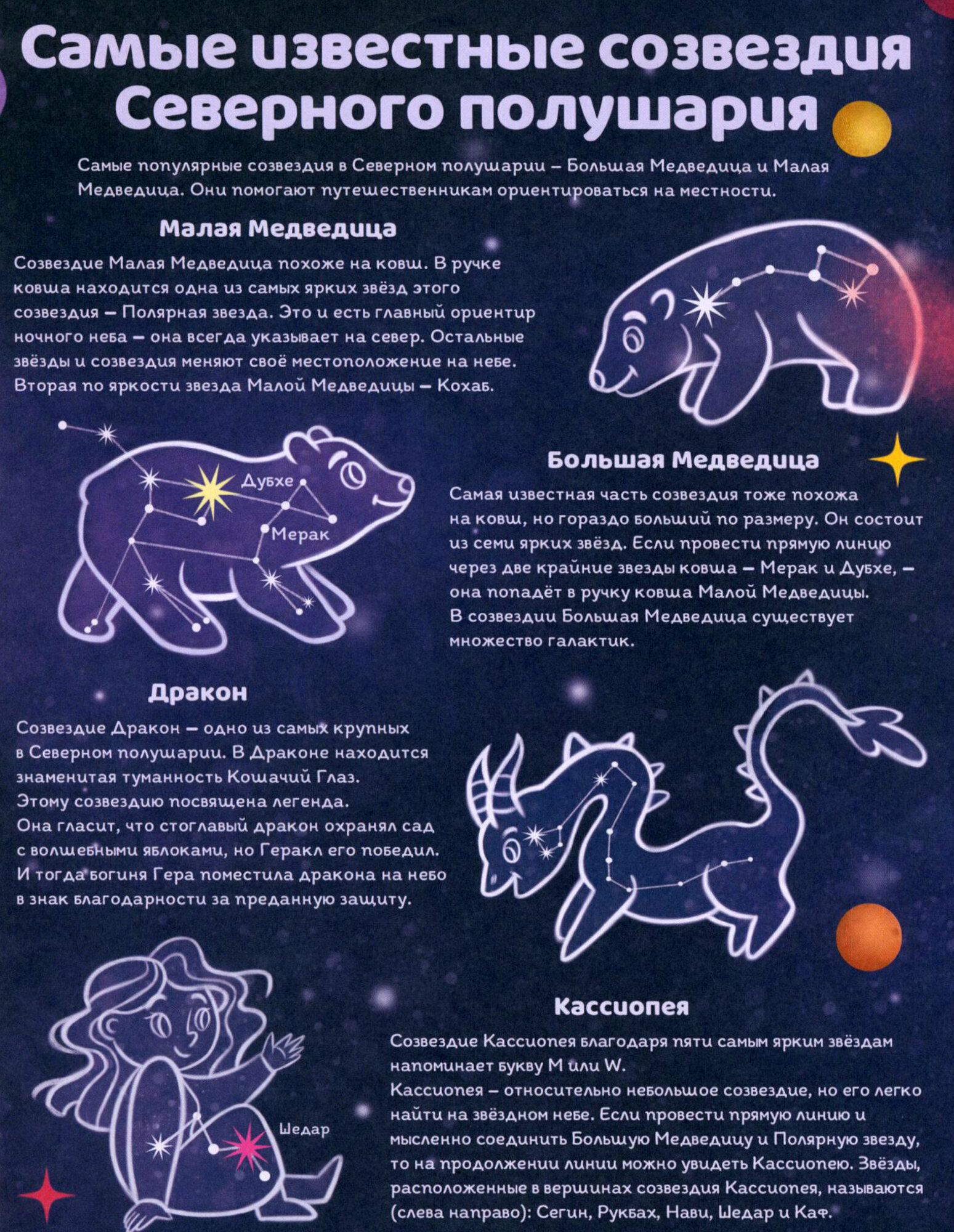 Почему день сменяет ночь? Сколько звёзд в Галактике? Какие созвездия помогают человеку? Из "Атласа неба" ребёнок узнает множество необычных и интересных фактов о Вселенной. А ещё он познакомится со всеми планетами Солнечной системы, узнает об их особенностях и блеснёт эрудицией в кругу друзей.