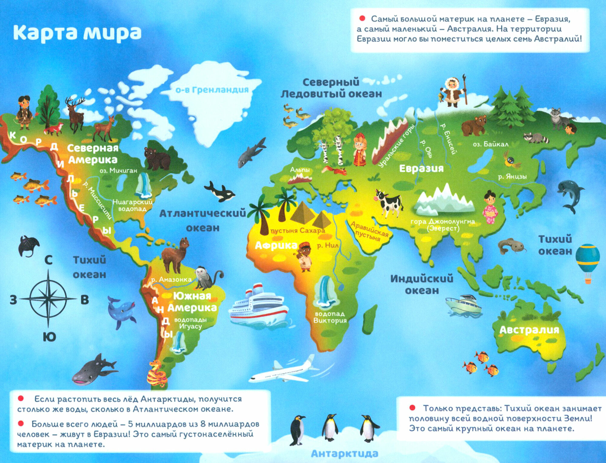 Что такое материк? Сколько океанов на планете? Как появилась столица Австралии? Почему в Исландии нет комаров? Из "Атласа мира" ребёнок узнает множество необычных и интересных фактов о континентах и их обитателях, познакомится с достопримечательностями. А ещё он выучит флаги 100 стран мира и блеснёт эрудицией в кругу друзей.