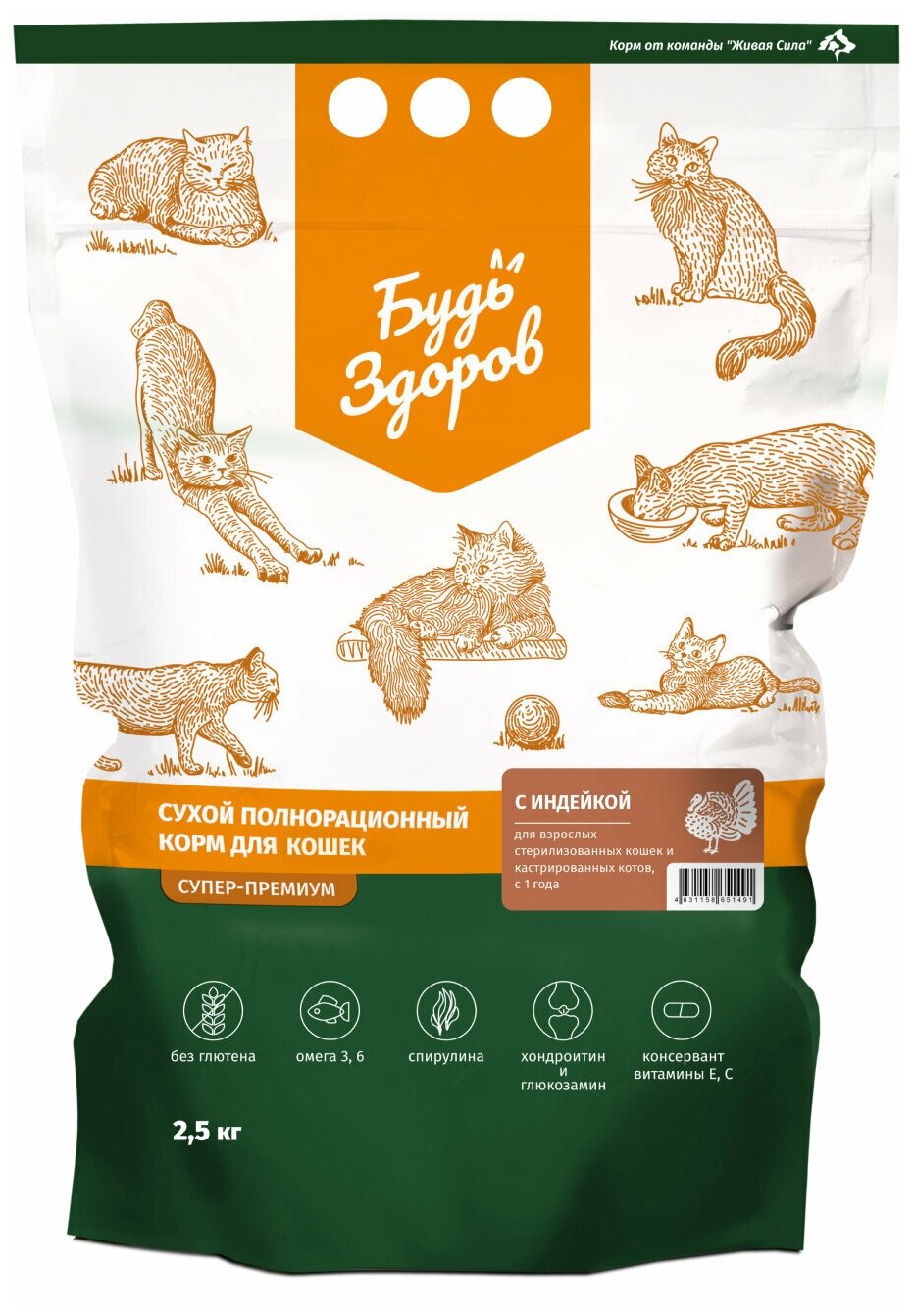 Сухой корм для кошек Будь Здоров с 1 года с индейкой 2.5кг ООО Живая сила