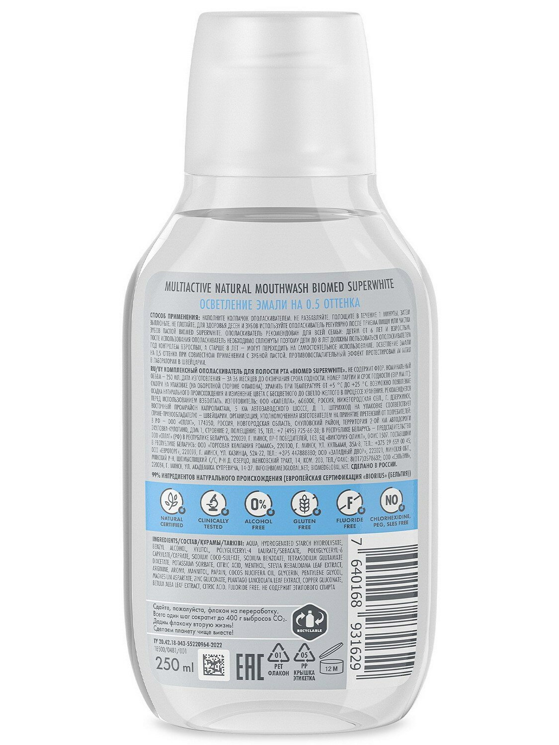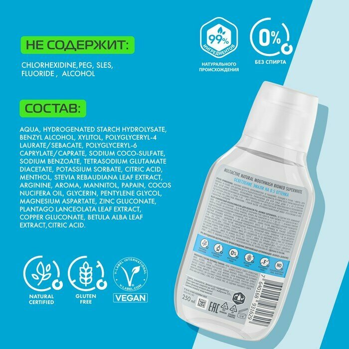 Ополаскиватель для рта Biomed SuperWhite 250мл Органик Фармасьютикалз