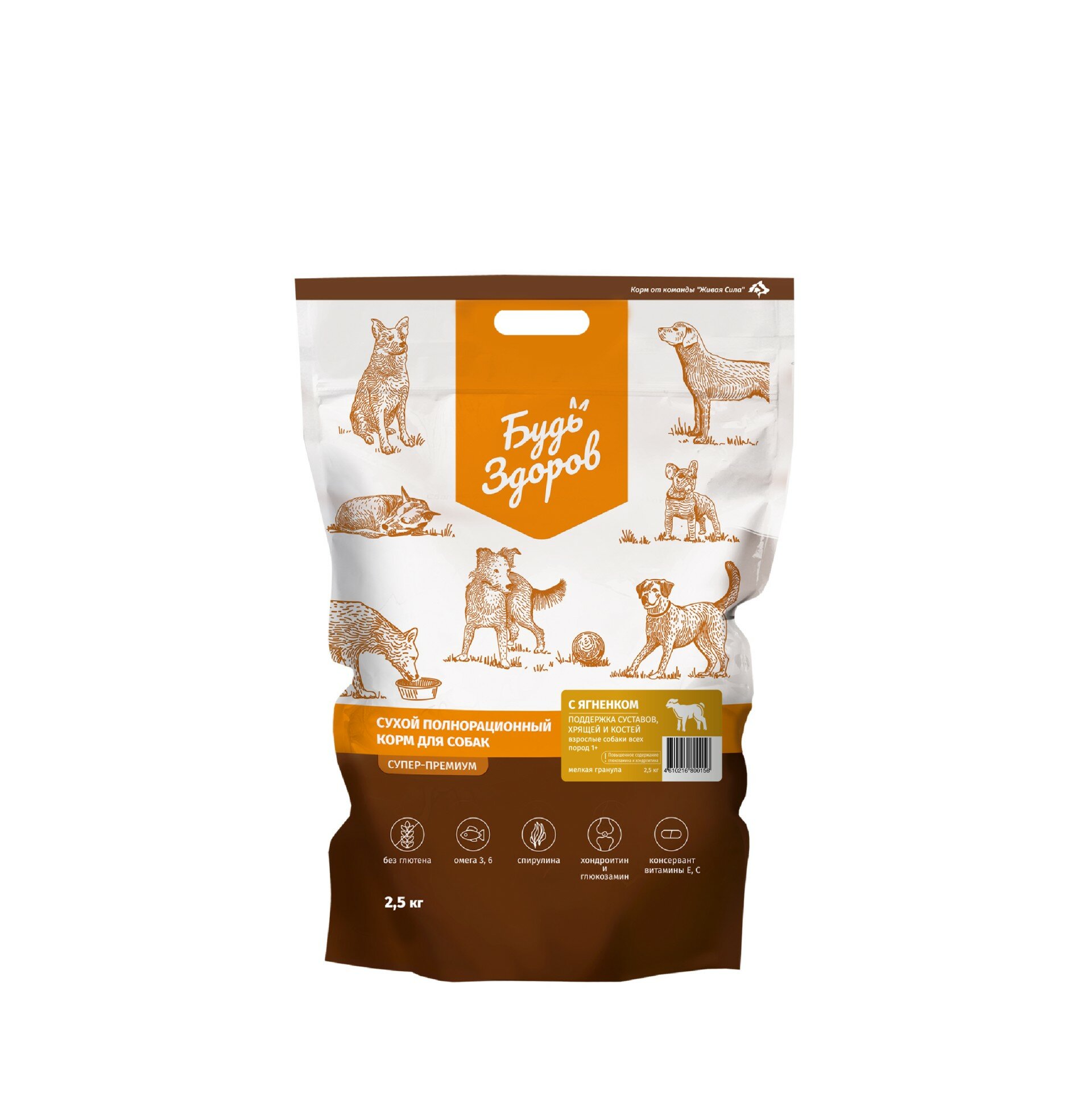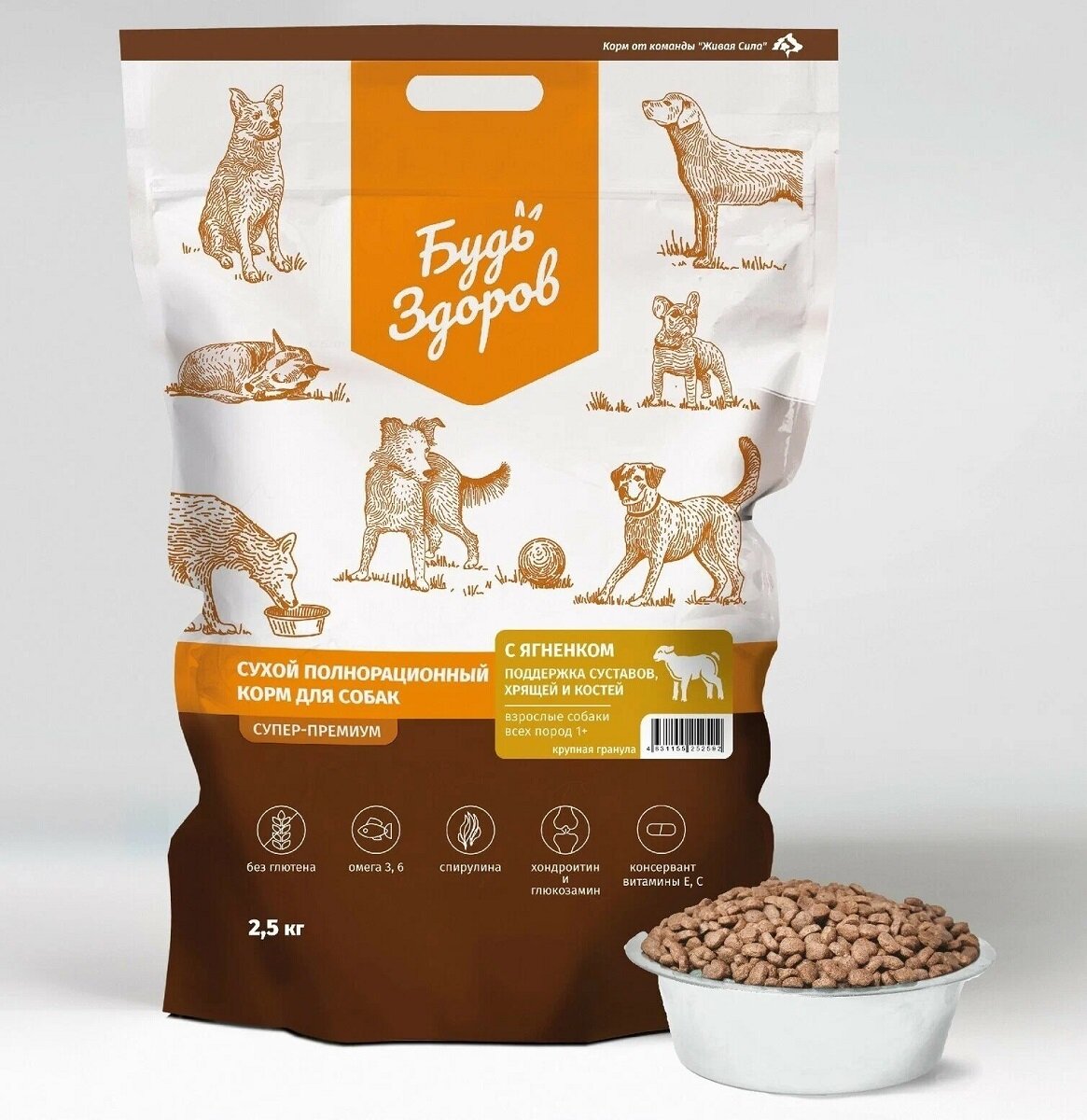 Сухой корм для собак Будь Здоров полнорационный с ягненком мелкая гранула 2.5кг ООО Живая сила