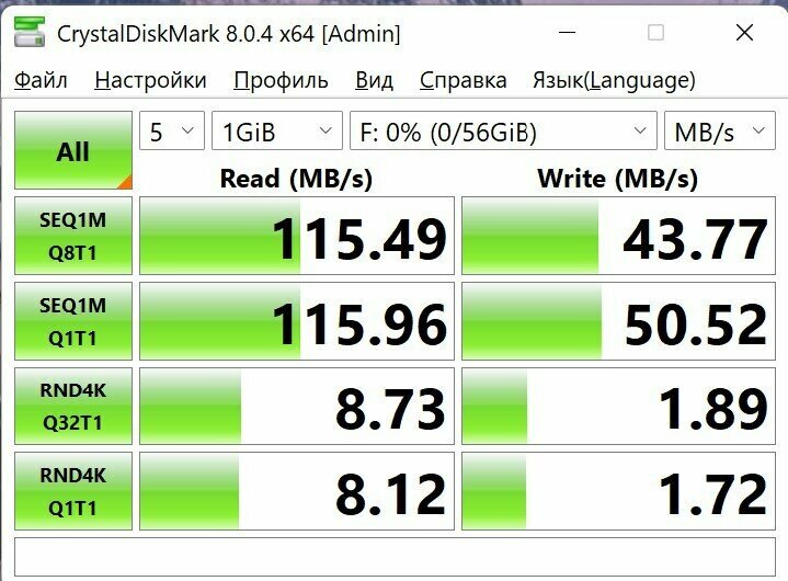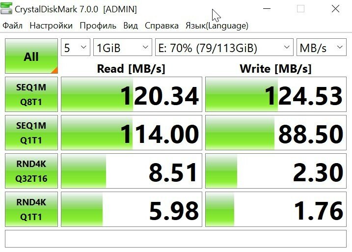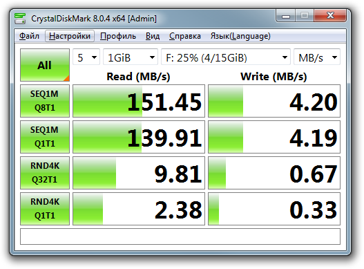 Sequential Read : 64.524 MB/s (На контроллере интел ~100 MB/s)