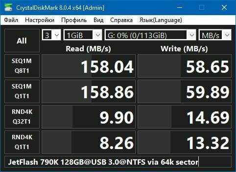 JetFlash 790 64 Gb Speed test