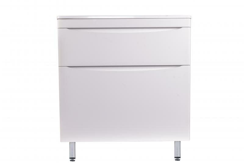 Тумба предназначена для использования в ванных комнатах с повышенной влажностью. Подвижные механизмы оснащены доводчиками для плавного закрывания. При производстве изделий используется самая толстая пленка в 2,8 микрон (производство Южная Корея). При натяжении пленки каждый элемент изделия проклеивается по всей поверхности высококачественным клеем Henkel (Германия). Лицевые фасады и боковины изделий изготовлены из высококачественного влагостойкого МДФ Kronospan, а внутренние ящики из ЛДСП Kronospan. При обработке фасадов МДФ применяется кромочный материал Rehau (Германия) 4 мм. Элегантная и надежная мебельная фурнитура и направляющие скрытого монтажа от Boyard. Внутренние ящики во всех моделях собраны с помощью евро-винтов, которые обеспечивают дополнительную жесткость и значительно увеличивают срок эксплуатации. Дюбель-стяжки, благодаря которым изделие приобретает надежное крепление, используются только от Hettich (Германия). Все открытые элементы при сборке мебели (в том числе, евро-винты и дюбель-стяжки) закрываются надежными заглушками Hettich. Для упаковки изделий применяется 5-ти слойный картон Высшего Класса.