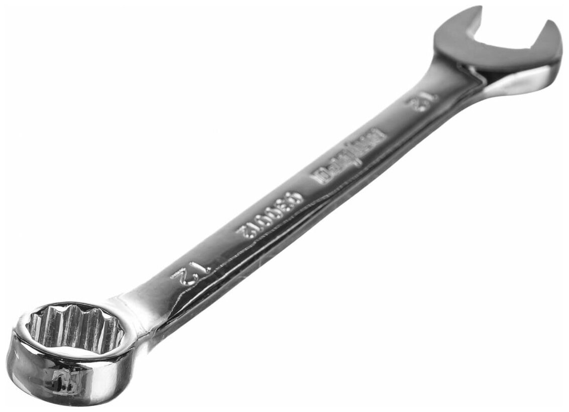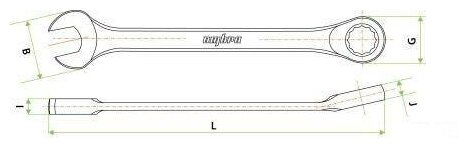 Самый распространенный гаечный ключ представляет собой конструкцию, объединяющую рожковую и накидную части. Инструмент изготовлен из высоколегированной стали, по стандарту ANSI/ASME B107.6 и соответствует требованиям ГОСТ 2838-80. Чечевичное сечение рукоятки с увеличенной толщиной ребра позволяет развить более высокий крутящий момент по сравнению с ключами двутаврового сечения европейского типа. Устойчивое к механическому воздействию и агрессивным средам зеркальное, трехслойное, хромоникелевое покрытие облегчает удаление загрязнений с инструмента после работы. Сочетание двух одноразмерных профилей компенсирует недостатки каждого в отдельности, обеспечивая передачу максимально возможной нагрузки на крепеж, при использовании накидной части и удобство использования рожковой части в труднодоступных местах.