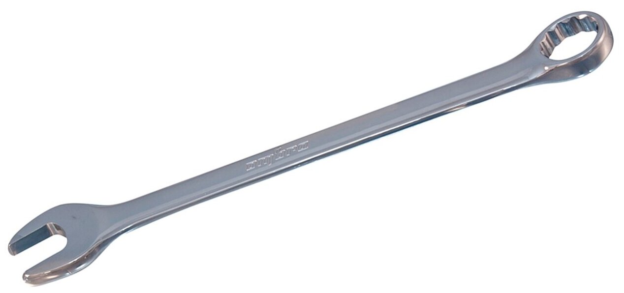 Самый распространенный гаечный ключ представляет собой конструкцию, объединяющую рожковую и накидную части. Инструмент изготовлен из высоколегированной стали, по стандарту ANSI/ASME B107.6 и соответствует требованиям ГОСТ 2838-80. Чечевичное сечение рукоятки с увеличенной толщиной ребра позволяет развить более высокий крутящий момент по сравнению с ключами двутаврового сечения европейского типа. Устойчивое к механическому воздействию и агрессивным средам зеркальное, трехслойное, хромоникелевое покрытие облегчает удаление загрязнений с инструмента после работы. Сочетание двух одноразмерных профилей компенсирует недостатки каждого в отдельности, обеспечивая передачу максимально возможной нагрузки на крепеж, при использовании накидной части и удобство использования рожковой части в труднодоступных местах.