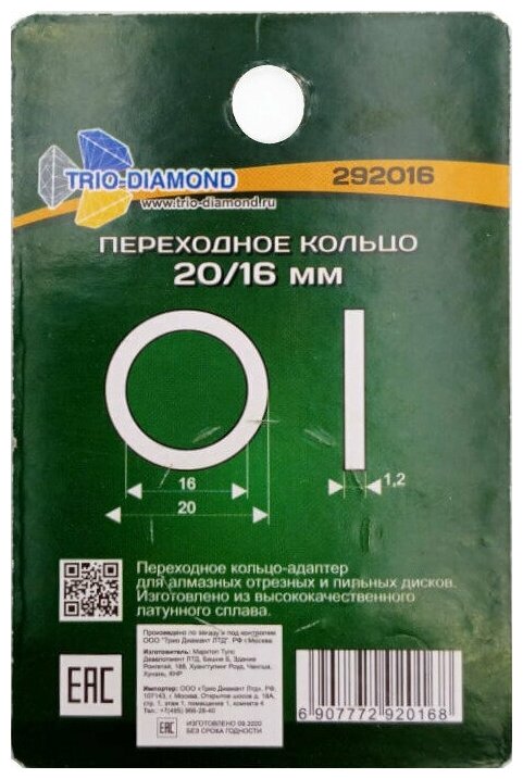 Кольцо переходное Trio Diamond 20/16мм 292016