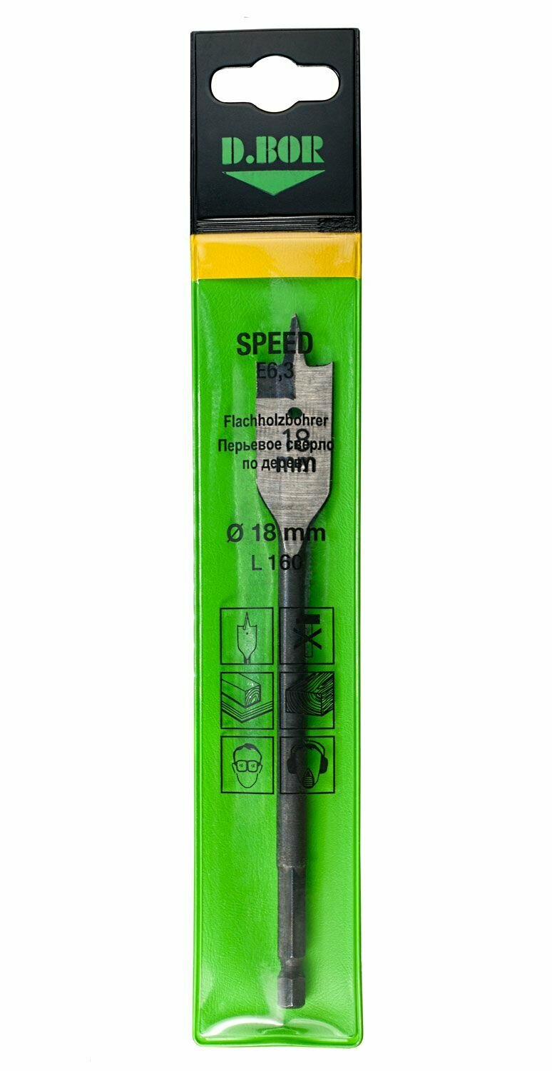 Сверло по дереву перьевое SPEED D.BOR 806180002D предназначено для дрелей, шуруповертов и сверлильных станков. Применяется для сверления древесины низкой и средней твердости. Изготовлено из инструментальной быстрорежущей стали с покрытием из нитрида титана. Центрирующий наконечник обеспечивает точное засверливание.