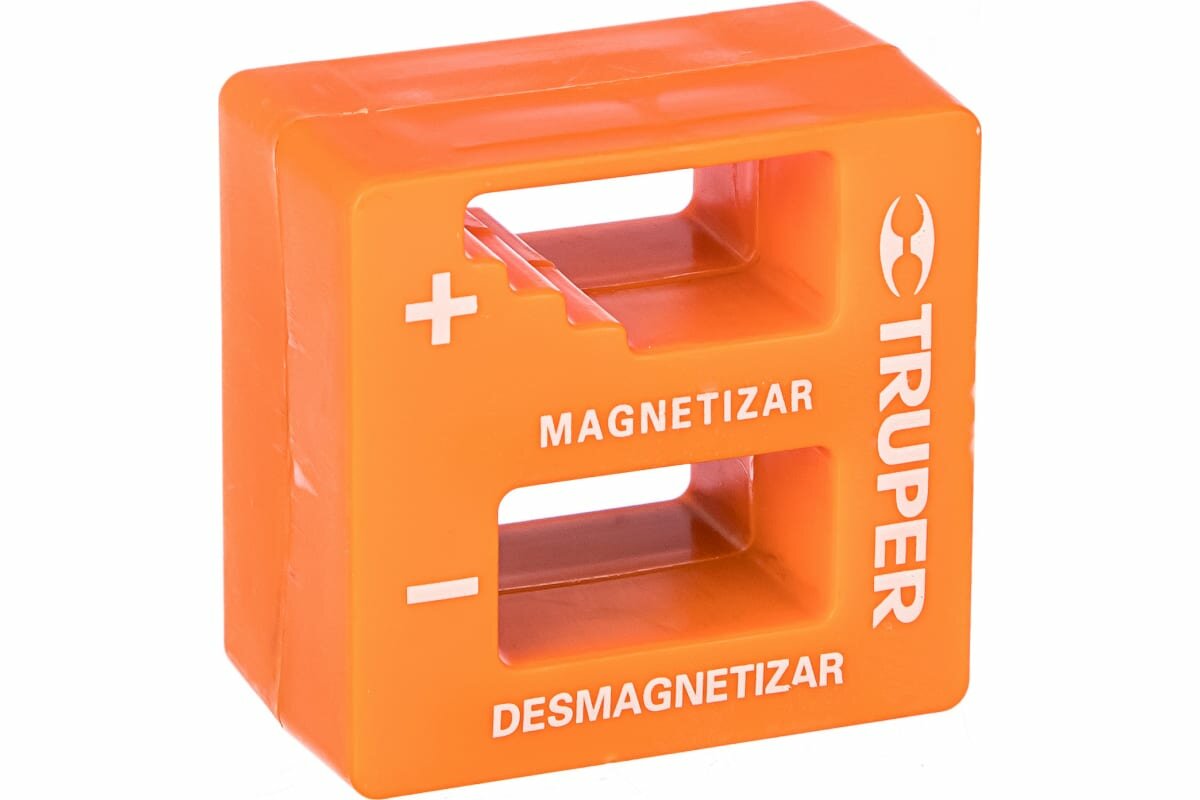 Прибор для намагничивания и размагничивания отверток и бит TRUPER 14141 является простым и компактным приспособлением, с помощью которого можно осуществить намагничивание или размагничивание стержней отверток, а также других инструментов, выполненных из стали. Он оснащен двумя слотами: со знаком "+" (для намагничивания) и со знаком "-" (для размагничивания). Преимущества намагничивателя-размагничивателя Truper 14141: Пластмассовый корпус прибора для намагничивания и размагничивания отверток и бит TRUPER 14141 обеспечивает надежность и высокую прочность;