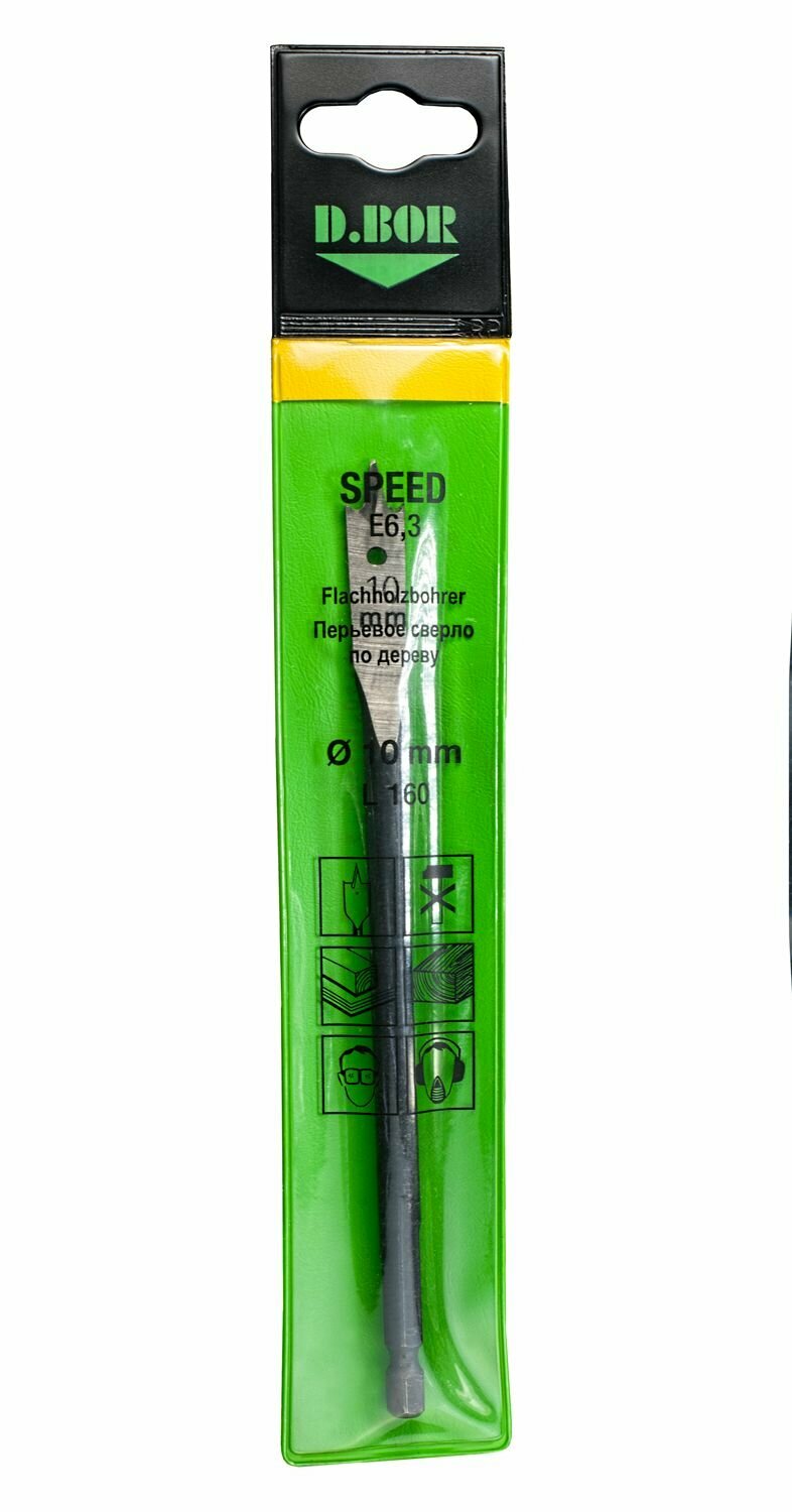Сверло по дереву перьевое SPEED D.BOR 806100002D предназначено для дрелей, шуруповертов и сверлильных станков. Применяется для сверления древесины низкой и средней твердости. Изготовлено из инструментальной быстрорежущей стали с покрытием из нитрида титана. Центрирующий наконечник обеспечивает точное засверливание.