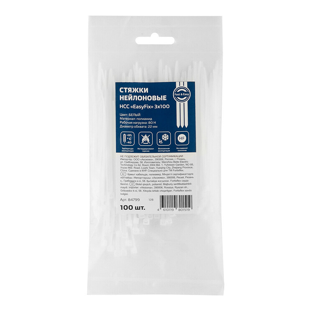 Стяжки нейлоновые НСС EasyFix 3*100 (б) (100 шт.) 84799 Fortisflex