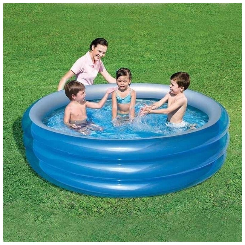 Бассейн надувной Bestway предназначен для дачных участков, пригородных домов, удобен в эксплуатации, прочный, что обуславливается поддерживающими надувными кольцами, долговечный, красивый и функциональный. Изготовлен он из прочных слоев ламинированного поливинилхлорида. Модель очень легко и быстро устанавливается и разбирается, выдерживает большие нагрузки.