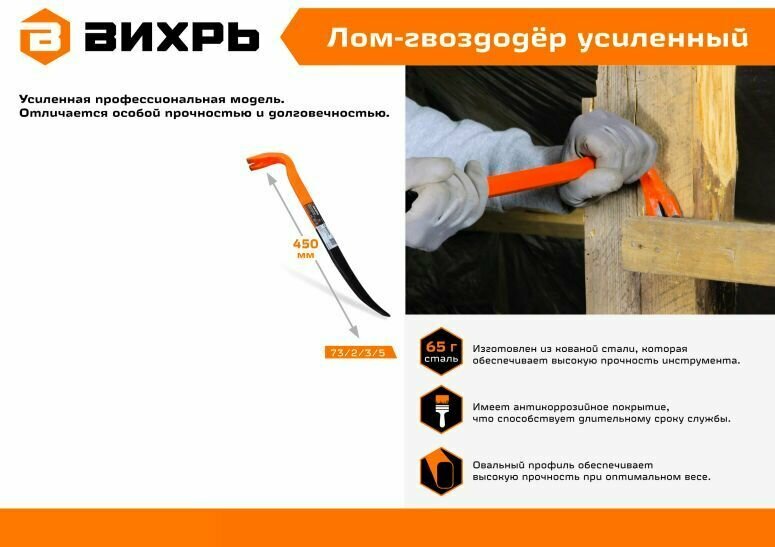Гвоздодер Вихрь усиленный 450мм 73/2/3/5