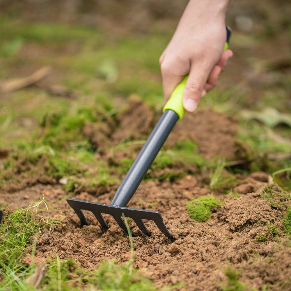 Набор садового инструмента (лопатка двусторонняя мотыжка пятизубчатые грабли) Deli DL580803 длина 31 см защита от ржавчины и коррозии