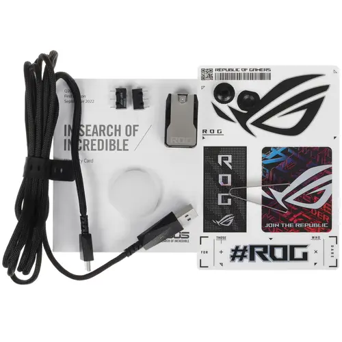 - Данная мышь способна подзаряжаться беспроводным способом по стандарту Qi. Для этого ее достаточно лишь положить на Qi-совместимое зарядное устройство, например коврик ROG Balteus Qi, наделенный красочной подсветкой и предназначенный специально для геймеров.