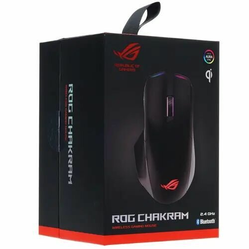 Мышь ROG Chakram X можно подключать по одному из трех интерфейсов: проводному USB (также используется для подзарядки) и беспроводному (2,4 ГГц или Bluetooth).
