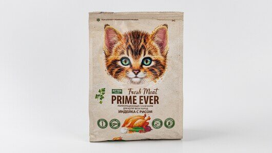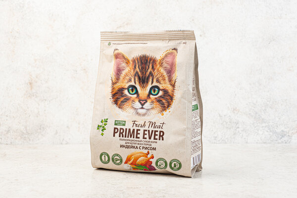 Полнорационный сухой корм для взрослых кошек всех пород. Корм PRIME EVER Fresh Meat является суперпремиальным. Корм изготовлен на основе свежего мяса индейки, в нём содержится 77% белка животного происхождения от общего протеина. Размер гранулы 5-8 мм.