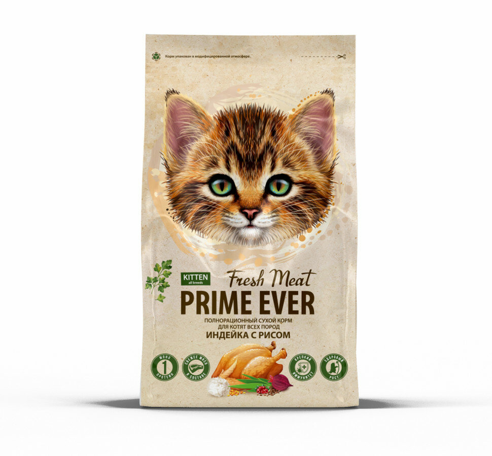 Сухой корм для котят всех пород Prime Ever Fresh Meat Kitten Индейка с рисом полнорационный 15 кг