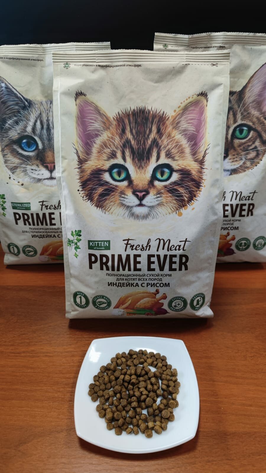 Полнорационный сухой корм для взрослых кошек всех пород. Корм PRIME EVER Fresh Meat является суперпремиальным. Корм изготовлен на основе свежего мяса индейки, в нём содержится 77% белка животного происхождения от общего протеина. Размер гранулы 5-8 мм.